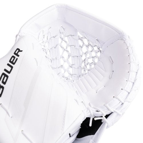 - Pocket: Verstärkte MAX Perimiter mit gewachstem Skate Lace Pocket; Größte BAUER Fanghand aller Zeiten