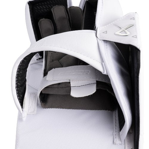 Die Bauer Supreme Shadow Stockhand bietet mit einem integriertem Fingerschutz und der Defense Cloud Technology (DCT) erstklassigen Schutz für den Goalie. Dank der DCT wird die Aufprallenergie effektiv abgefangen und verteilt, um Verletzungen zu minimieren. Die Connekt+ Handfläche mit DCT Comfort Edge sorgt für eine optimale Passform und hervorragenden Tragekomfort. Die Verwendung von hochwertigem HD- und CURV Material gewährleistet eine hohe Strapazierfähigkeit und eine gleichbleibende Schutzfunktion. Mit der Form der Fanghand wird eine noch größere Abdeckung ermöglicht.